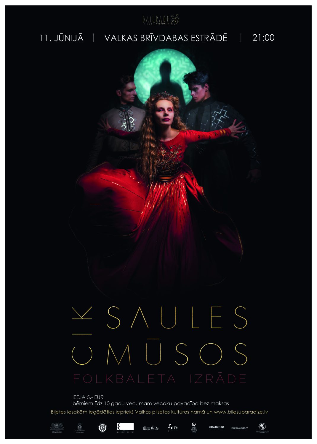 Sestdien, 11. jūnijā plkst. 21.00 Valkas pilsētas brīvdabas estrādē folkbalets “Cik Saules mūsos”.