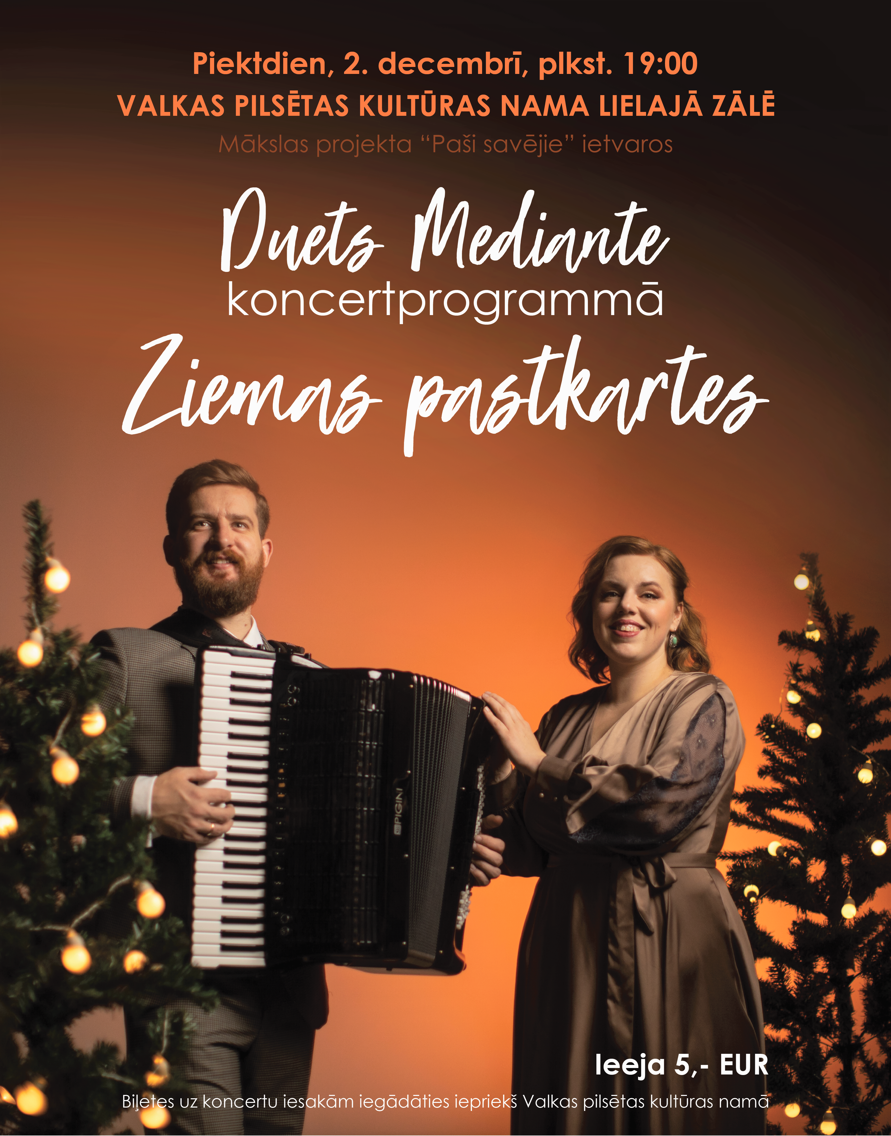 Valkas pilsētas kultūras namā 2. decembrī plkst. 19.00 – Duets Mediante ar koncertprogrammu “Ziemas pastkartes”.