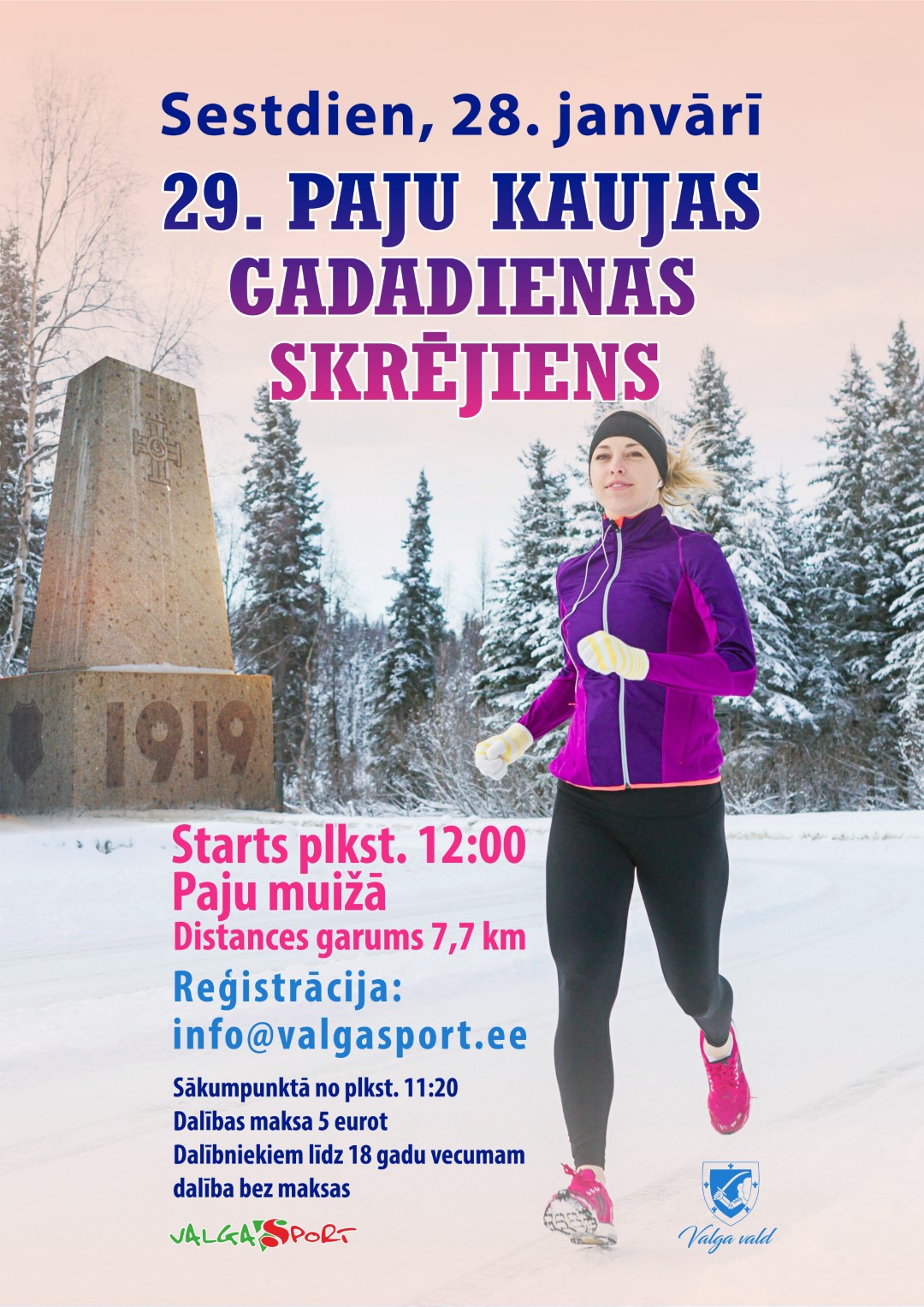 Sestdien, 28. janvārī Paju muižā netālu no Valgas (Igaunija) norisināsies 29. Paju kaujas gadadienas skrējiens.