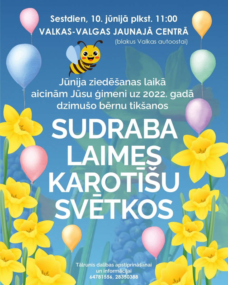 - plkst.11.00 Valgas - Valkas jaunajā centrā – Sudraba laimes karotīšu svētki 2022. gadā dzimušajiem Valkas novada bērniem