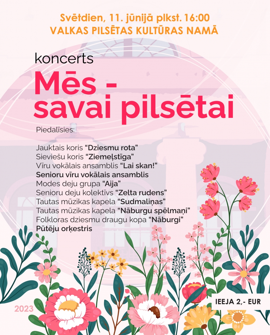 - plkst. 16.00 Valkas pilsētas kultūras namā - amatiermākslas kolektīvu koncerts “Mēs - savai pilsētai”. Ieeja – 2 eiro
