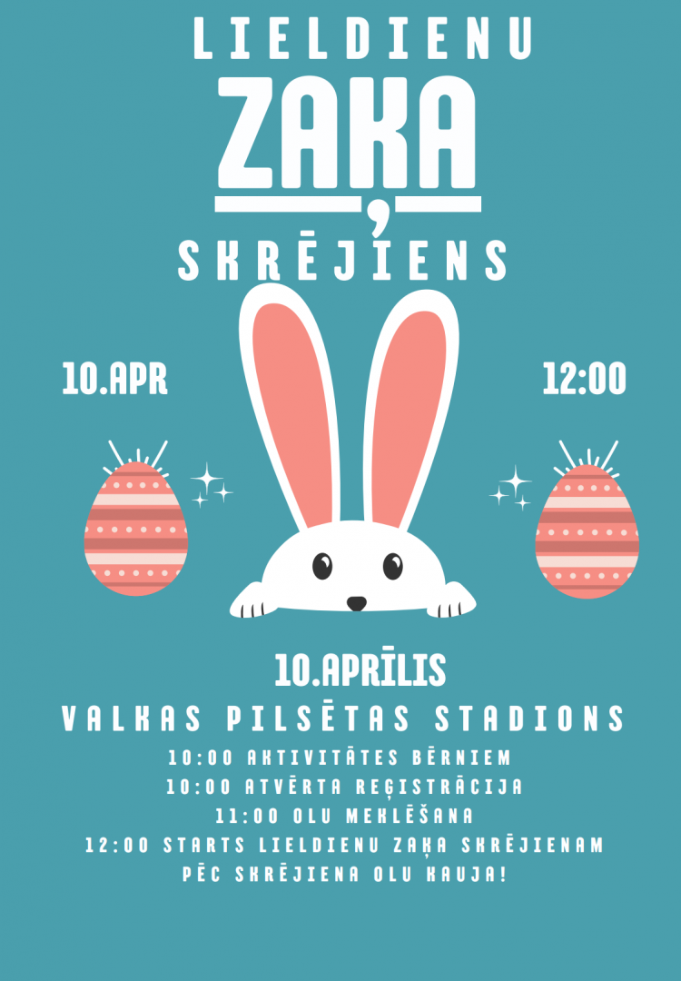 - No plkst. 10.00 līdz 11:40 atvērta reģistrēšanās Lieldienu zaķa skrējienam;