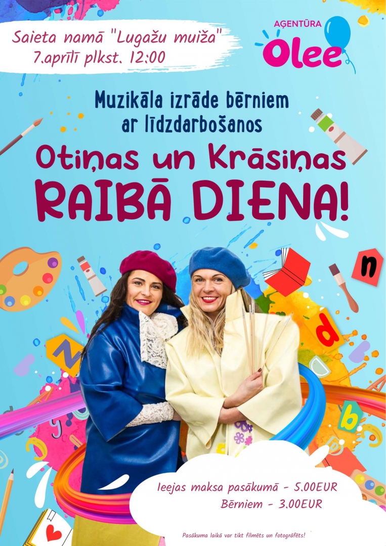 7. aprīlī plkst. 12:00 Saieta namā “Lugažu muiža” - Lieldienu pasākums bērniem "Otiņas un Krāsiņas raibā diena". Pēc koncerta radošās darbnīcas kopā ar Daigu. Ieejas maksa - 5.- EUR, bērniem 3.- Eur