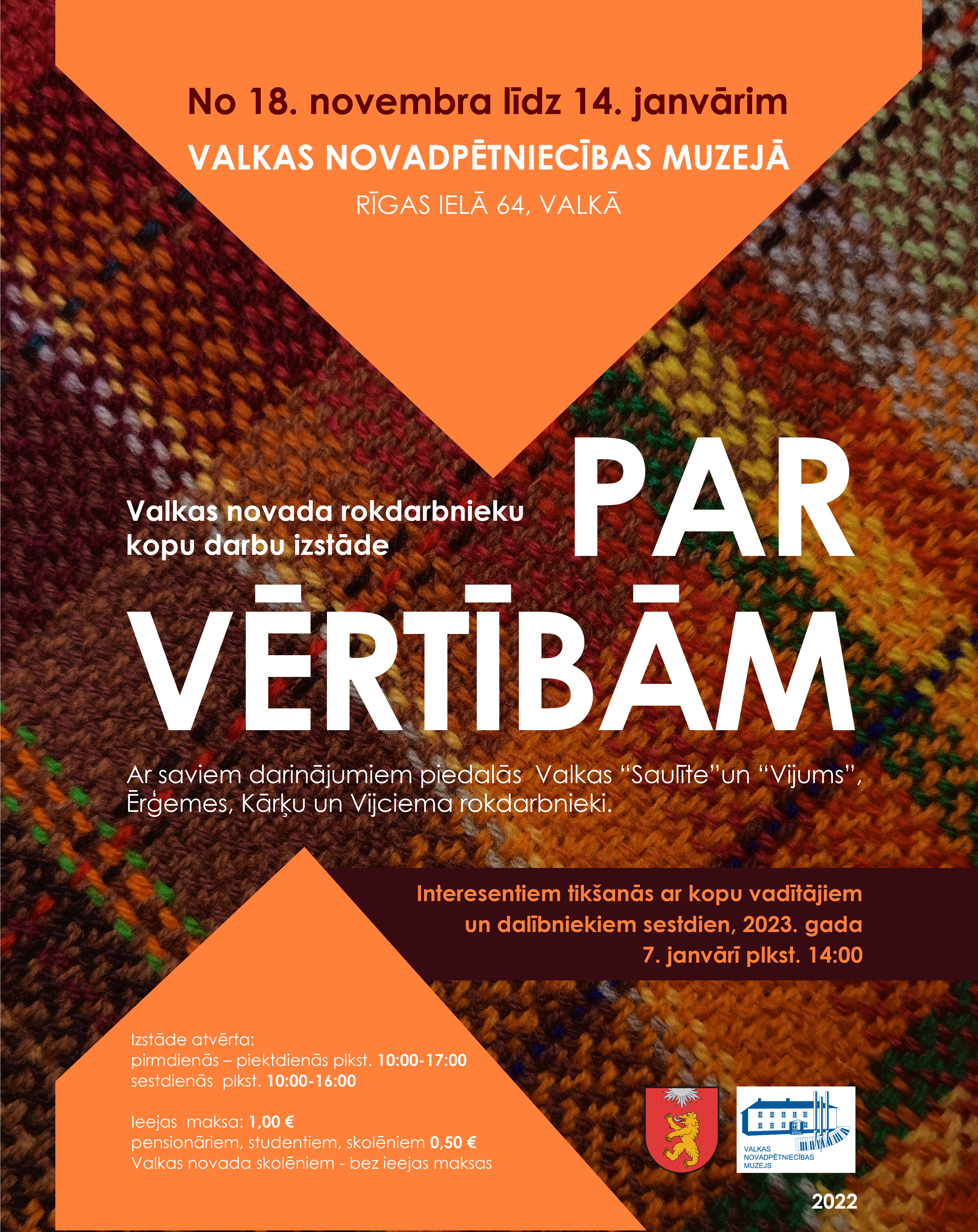Valkas novadpētniecības muzejā no 18.novembra līdz 2023.gada 14.janvārim apskatāma Valkas novada rokdarbnieku kopu darbu izstāde “par vērtībām”.