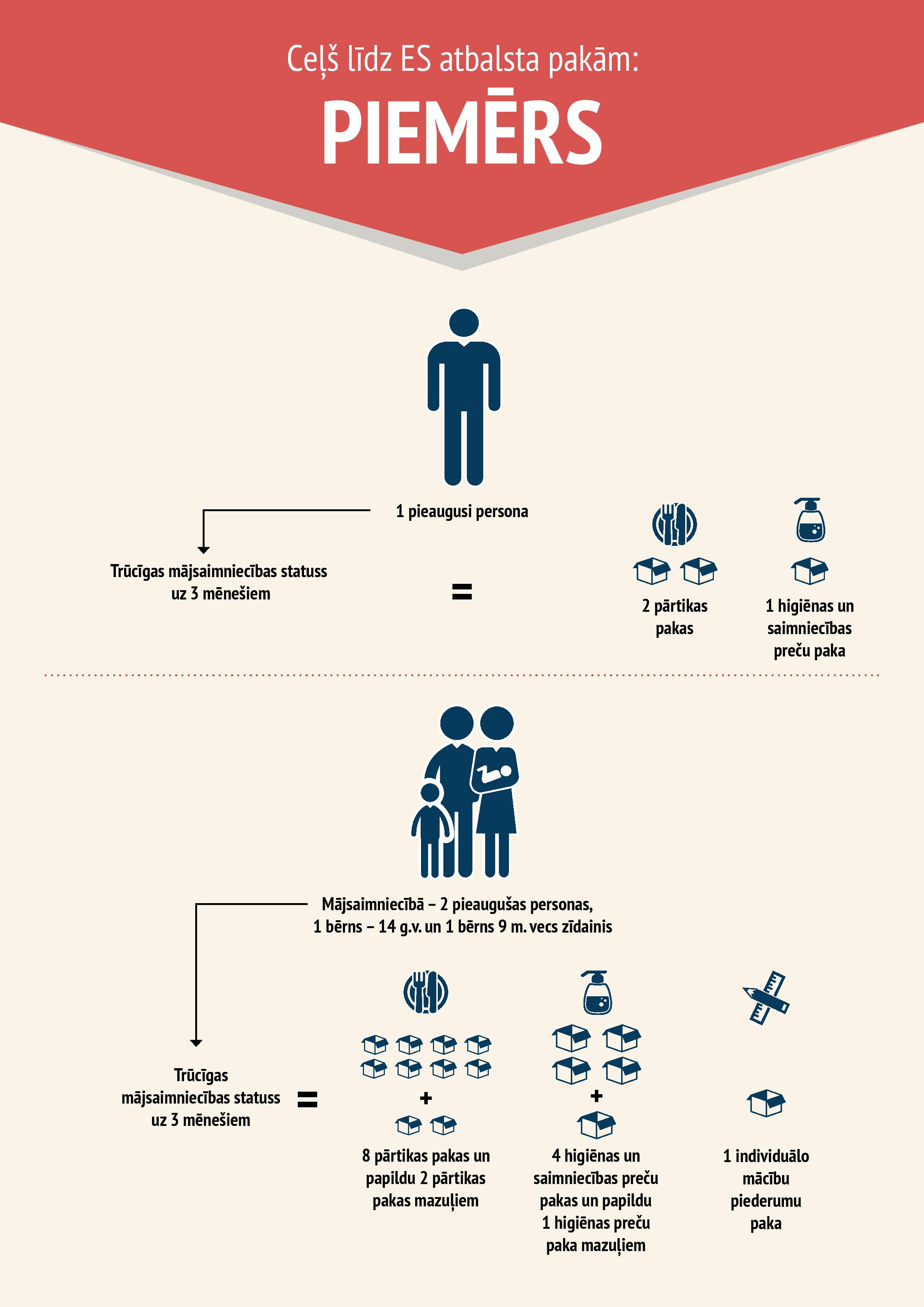 - maznodrošinātas mājsaimniecības statusam (mājsaimniecības, kurās ienākumi nepārsniegs 376 euro pirmajai vai vienīgajai personai, bet katrai nākamai personai mājsaimniecībā 264 euro).