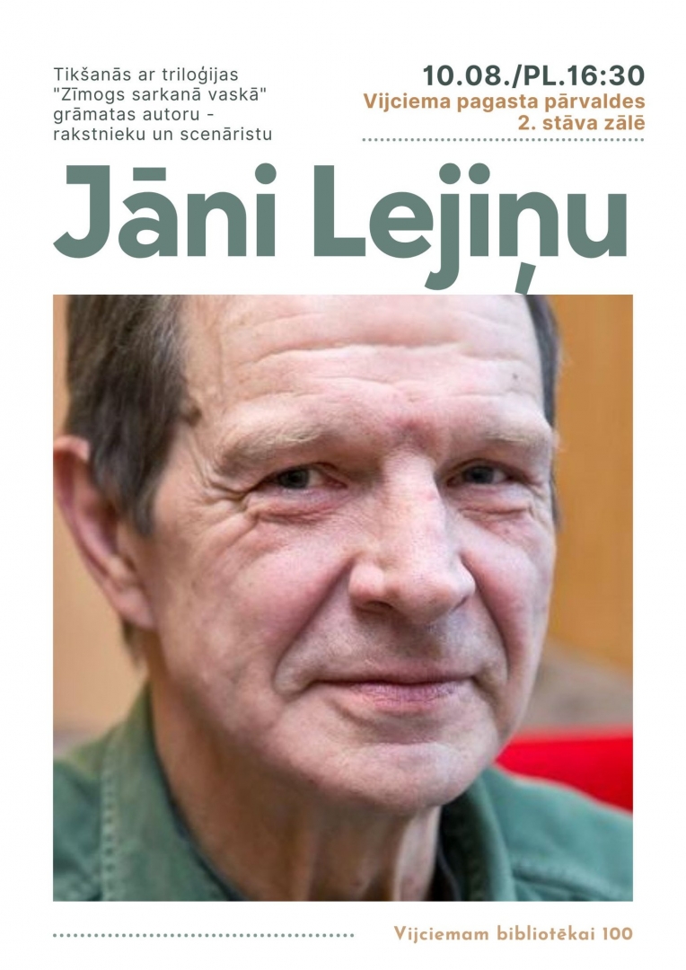 - plkst. 16:30 Pagasta pārvaldē. Tikšanās ar triloģijas “Zīmogs sarkanā vaskā” grāmatu autoru Jāni Lejiņu