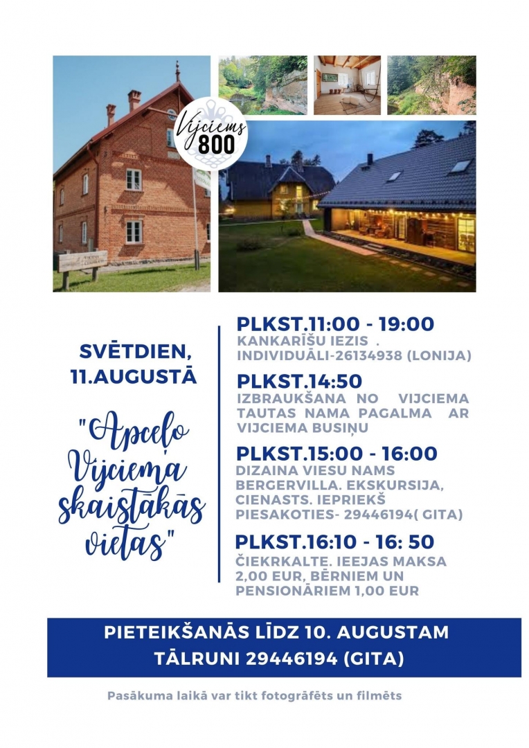 Ekskursijai jāpiesakās iepriekš zvanot uz tālr.nr. +371 29446194 (Gita)